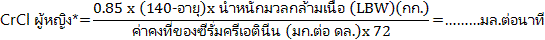 สมการ Cockcroft-Gault1 *ในผู้หญิงจะคูณด้วย 0.85 เนื่องจากมีมวลกล้ามเนื้อน้อยกว่าผู้ชาย |