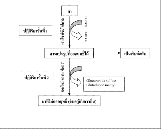 โดยมีผลให้การทำงานของตับ เสื่อมลง การแปรรูปของยาเปลี่ยนแปลงไป ความเป็น
